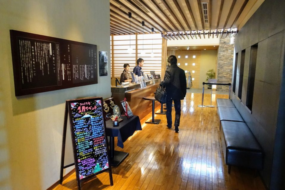 入り口は温泉旅館や高級料亭を思わせる雰囲気。すでにこの段階で普通のスーパー銭湯と一線を画している。
