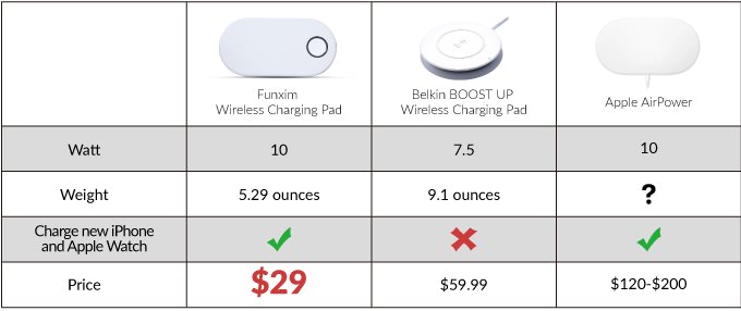 ワイヤレス充電パッドfunximとbelkin-airpowerとの比較