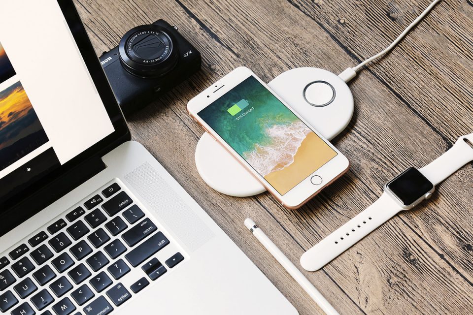 iPhone 8やiPhone X、Galaxy S8などが採用している高速ワイヤレス充電規格のQiに対応。なのでケーブルに挿すことはもう過去のことのように、シンプルに置くだけで高速充電が簡単に可能です。