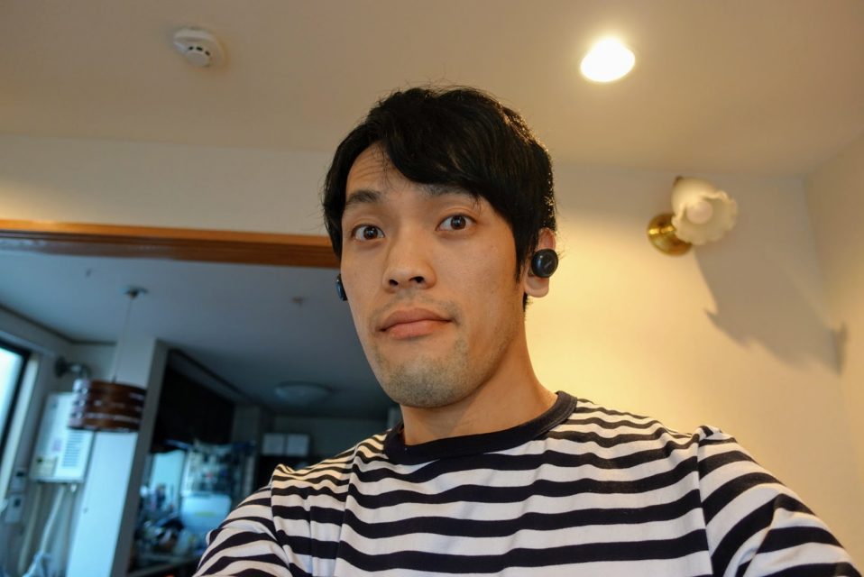 moviemaskと完全ワイヤレスイヤホンbosesoundsportfreeを耳につけるdaiking